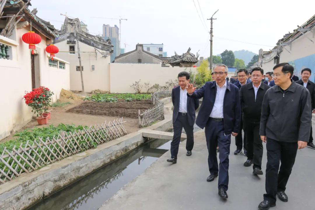 揭阳市委书记蔡朝林(左一)、市长张科(右一)等领导检查什石洋村美丽乡村建设情况。